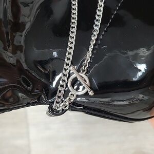 Now that's how to make an entrance! Edgy deets like layered chain hardware and a sassy sculpted heel lend modern-chic appeal to these glossy patent-look booties