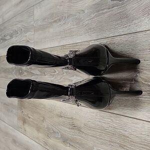 Charles By Charles David Size 7 Black Patent Leather Lugo Sculpted Heel Bootie