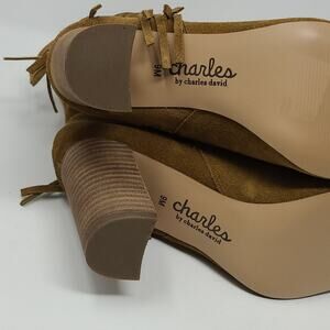Charles By Charles David brand new with out box Boulder Booties fringe thrim decorated zip side 3.5 inches stacked heel color brown size 9M. You have a question don't hesitate to ask.