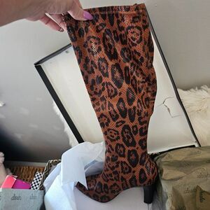 Charles By Charles David Women's Dalton Camel Leopard Print Stretch Boots Size 7