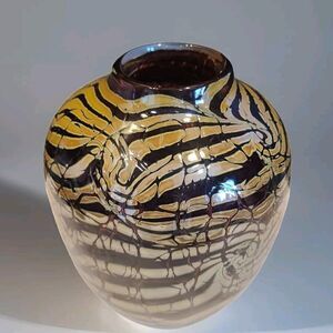 Charles Keeling CJK 2005 Iridescent Studio Art Glass | Hand Blown Vase | Signed by the Artist on the bottom | Excellent Used Vintage Condition | No chips or cracks | Weight before packaging 2 lbs.