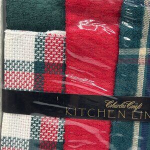 Charles Craft Kitchen Linens Red Green Christmas Dish Towels Plaid