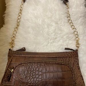 Color: Brown & Soft Gold Chain Hardware Shoulder Strap