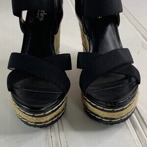 Charles David 5.5 Black Espadrilles Wedges Shoes Open Toe Ankle Strappy Sandal
