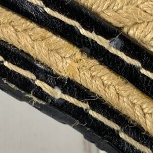 Gently used condition. Some scuffs, wear, and marks on the front and back. Manufacturer glue residue on the espadrilles. Some wear on the bottom soles. See pictures