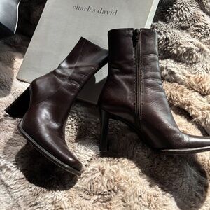 Dark brown barely wore Charles David ankle boots. 2 1/2inch heels.