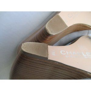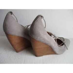 *Charles David Beige Suede Pumps Ankle Tie Closure Stacked Wedge Heels