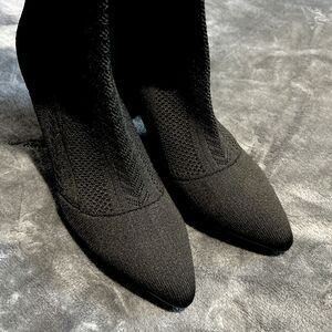 Charles David Black Davis Knee High Heeled Boots Stretch Pull On Womens 8M New
