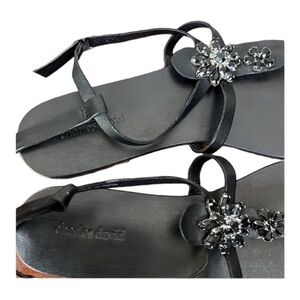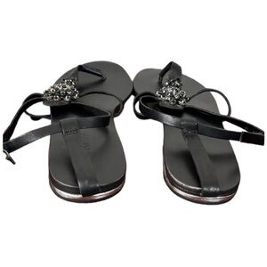 Charles David Black Jeweled Ankle Strap Flat Sandal Size 8