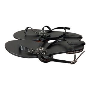 Charles David Black Embellished Jeweled Ankle Strap Flat Sandal Size 8