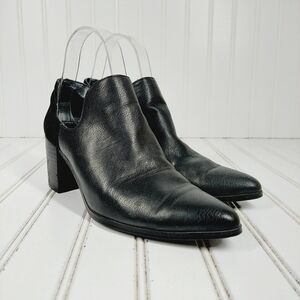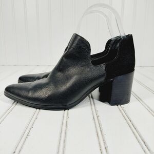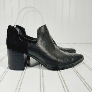 Charles David Black Leather Slip On Cut Out Block Heel Ankle Boots D833