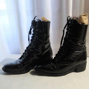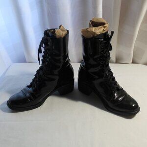 Charles David black patent leather lace-up ankle boots, size 5.5