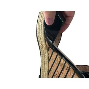 Charles David Black Patent Leather Wedge Cork Sandal sz 9.5