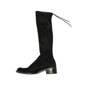 Elevate your wardrobe with these Charles David knee-high boots, crafted from luxurious black velvet with a little bit of stretch for a perfect fit. Featuring a sleek silhouette and a low block heel, these boots combine style and comfort for any occasion.