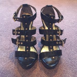 Charles David sexy Black block heels. Heel height is 5" . Strappy , but comfy! Wore them only once or twice . Great heel, wear it with everything !