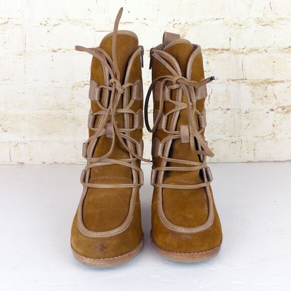 Charles David boots, size 8 womens, suede leather boots, lace up ankle boots, block heel booties, brown suede boots, heeled booties, zip closure boots, fall winter boots, designer ankle boots