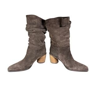 Charles David Brown Suede Slouchy Pointed Toe Block Heel Boots Size 8M