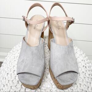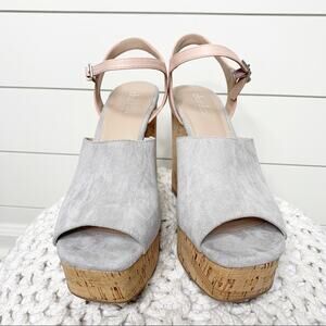 Charles David Dory Faux Suede Platform Wedge Sandals Grey Blush Size 10M