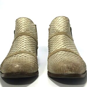 Charles David Farren Tan Snakeskin Embossed Suede Leather Ankle Boots Size 9