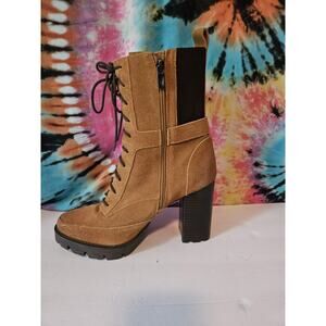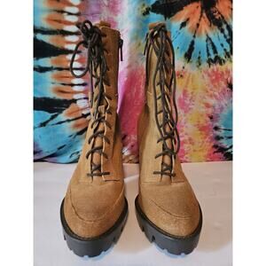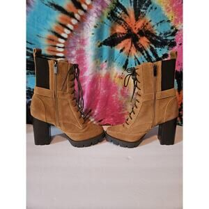 Charles David Gimmick Combat Boot Women's Size 9 Camel w Black Sole & Heels