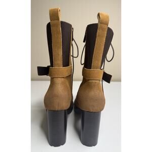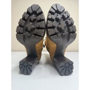 * Item details: Charles David Gimmick 4" Heeled Combat Boot Womens 10M Wheat Nubuck Leather Side Zip & Optional Lace Up Closure 1" Platform Almond Toe Rubber Lug Soles