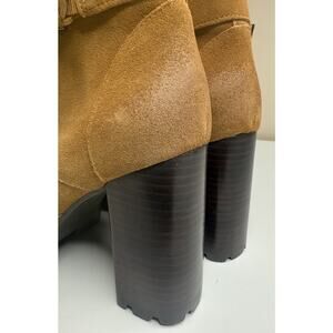 Charles David Gimmick Heeled Combat Boot Womens 10M Wheat Nubuck Leather Zip