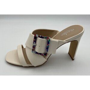 Charles David Gleam Slide Off White Heeled Sandal Colorful Buckle 9.5M NWT