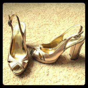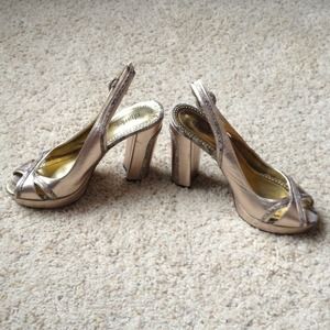 Charles David Gold Peep Toe w Snakeskin Trimming