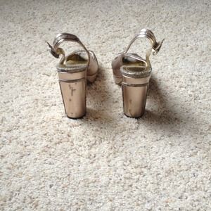 These shoes have only been worn once and are in fantastic condition!! There are a few marks on the back of the heels as shown in the pic above...probably from moving, but hidden with jeans. The heel straps are adjustable.