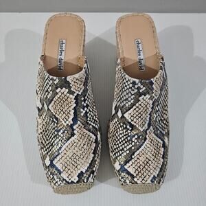 Charles David Gramercy Wedge Womens 9 Natural Multi Snake Print Espadrille Mule