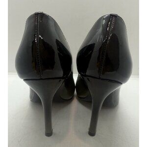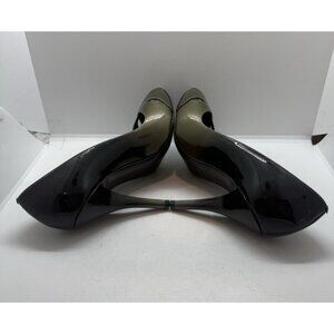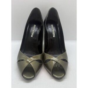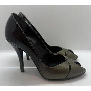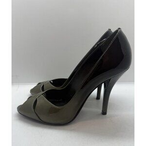 Charles David Gray Olive Green Heels Peep Toe Women's Shoes 8B Patent Leather