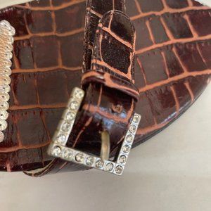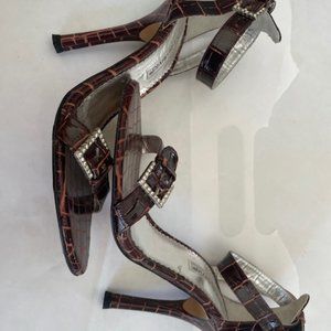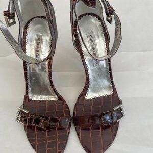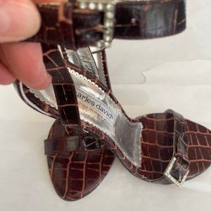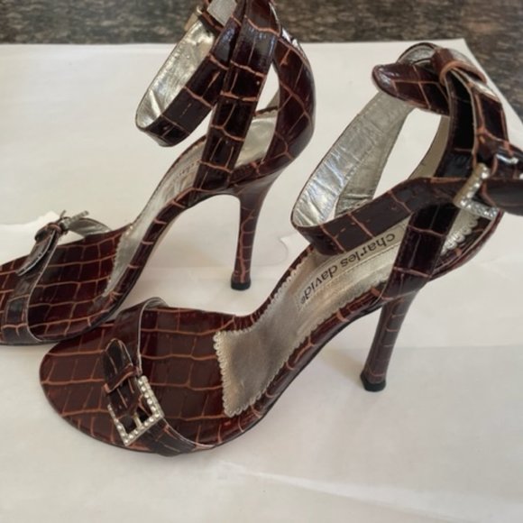 Charles David High Heel 7.5 Crocodile Patent Leather design with rhinestones accents on buckles. Straps around ankle and very sexy. Worn 3 times. Look brand new with no scuffs, clean heels and soles hardly worn