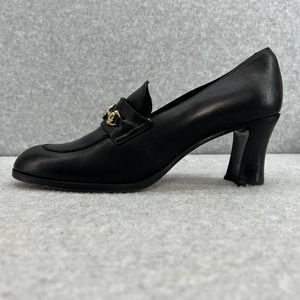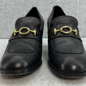 Charles David Horsebit Loafer Mid Block Heel Pump- Black Leather - Women Size 10