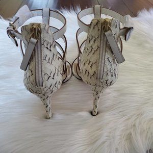 Charles David, Idealize, size 6, white gladiator strappy sandal, NEW, adjustable upper strap, back zipper, round toe, 3 3/4" heel. Never been worn, lovely sandal.