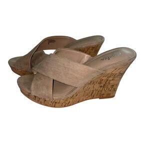 Charles David Latrice Tan Suede Strappy Wedge Sandals Size 9