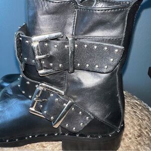 Black Leather With Silver Studs and Double Straps with Heavy Buckles Wrap the Shaft.
