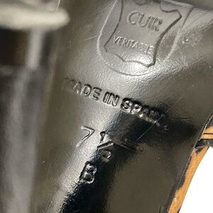 Toe box is gathered and set with a medallion of Topaz colored stones backed by an oval if the same pierced leather