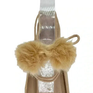 - Faux Fur Pom Pom Accent on Tie Up Sttaps