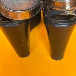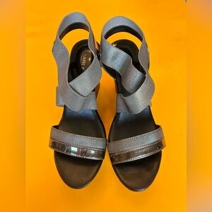Charles David Metallic Gray Elastic Strap High Heel Wedge Sandals