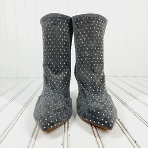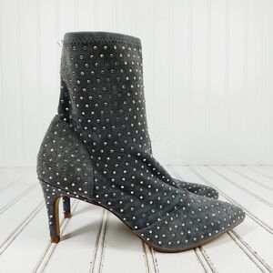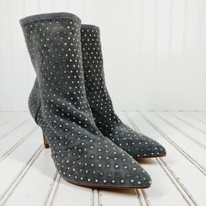 Charles David Personal Gray Rhinestone Slip On Heeled Ankle Boots M510