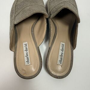Charles David Porter Mules Womens 8 Embossed Gray Leather Slip On Clog Shoes
