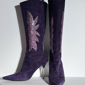 Charles David Purple Suede Pink Swarovski Western Cowboy High Heel Boot Sz 8.5