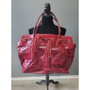 Charles David Red Alligator Leather Hobo Bag Purse Travel Overnight Drawstring