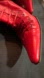 Bold red heeled boots with lace-up design. Features sleek stiletto heel and side zipper. Perfect for a statement look.