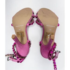 Charles David Sandals Ladies Size 5 Pink Rhinestones Suede Ankle Strap Heels