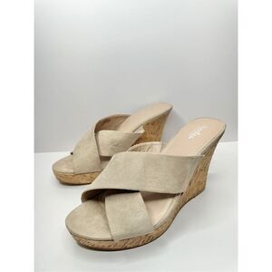 Charles David Sandals Size 12 Womens Tan Crisscross Slip On Wedge Heel Open Toe