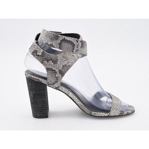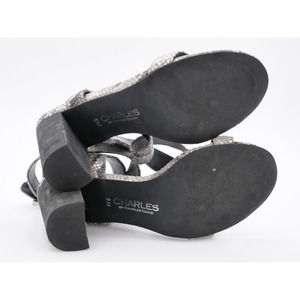 Charles David Sandals Womens 6 Gray Leather Snake Print Block Heel Gladiator