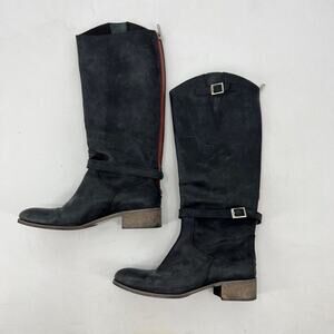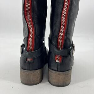 Charles David Womens 9 Boots Matte Black Moto Riding Zip Back Made Italy
