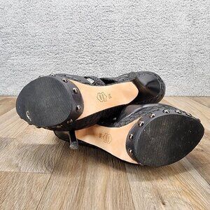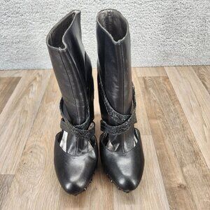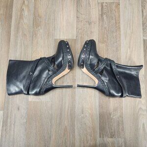 Charles David Women's 9.5 Black Leather Ankle Pull On Cut Out Heeled Booties