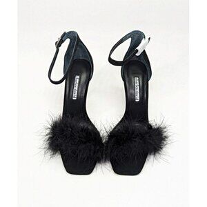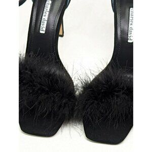 Charles David Women's Esquire Black Feather Ankle Strap High Heel Sandals Size 9